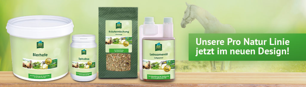 In unserem Sortiment Pro Natur finden Sie hochwertige Einzelfuttermittel, sowie Einzelkräuter, Kräutermischungen und kaltgepresste, naturbelassene Öle zur täglichen Fütterung Ihres Pferdes. Mit den Komponenten der Pro Natur Linie können Sie die Krippenfutterration für Ihr Pferd selbst zusammenstellen oder aufwerten.